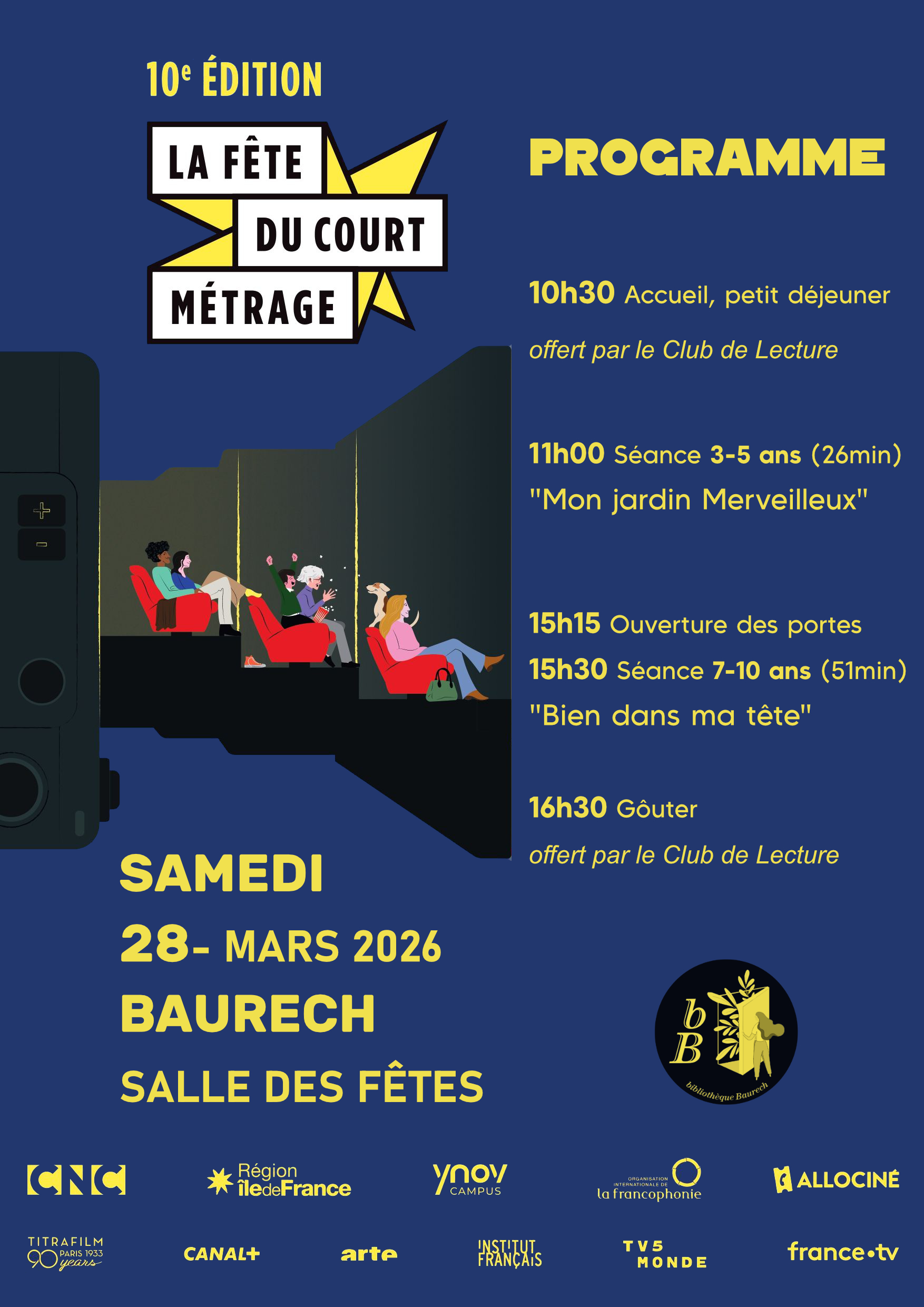 🎥🎞️🎬 SAMEDI 28 MARS - LA FÊTE DU CINÉMA - BAURECH - SALLE DES FÊTES