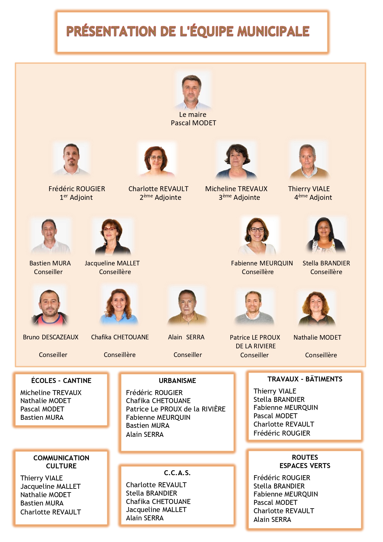 et de 10 conseillers municipaux : Mmes Stella BRANDIER, Chafika CHETOUANE, MM. Bruno DESCAZEAUX, Patrice LE PROUX DE LA RIVIERE, Mmes Jacqueline MALLET, Fabienne MEURQUIN, Nathalie MODET, MM. Bastien MURA, Alain SERRA.